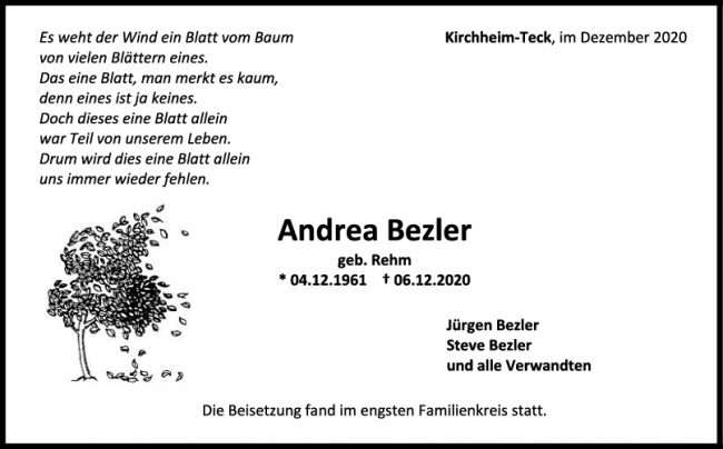 Trauer Andrea Bezler