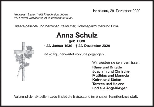 Trauer Anni Schulz