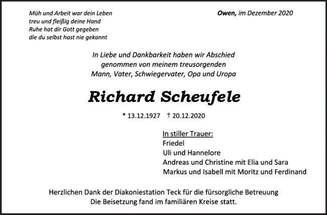 Trauer Richard Scheufele