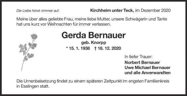 Trauer Gerda Bernauer
