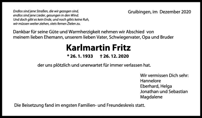 Trauer Karlmartin Fritz