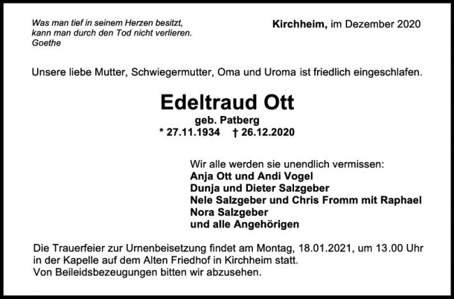 Trauer Edeltraud Ott