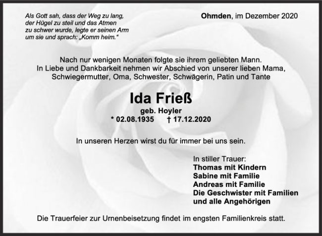TodesanzeigeVon 26. Dezember 2020Kommentar hinterlassen