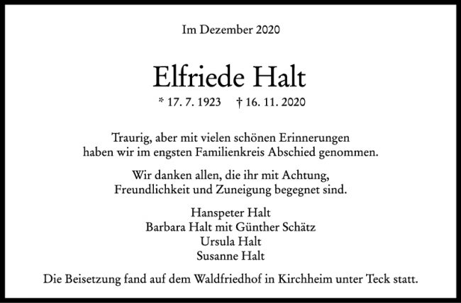 TodesanzeigeVon Benny Kuder12. Dezember 2020Kommentar hinterlassen