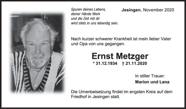 Trauer Ernst Metzger