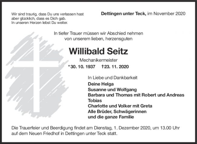 Trauer Willibald Seitz