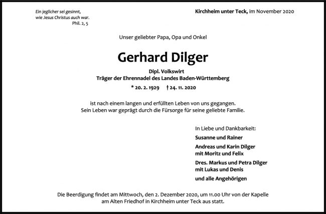Trauer Gerhard Dilger