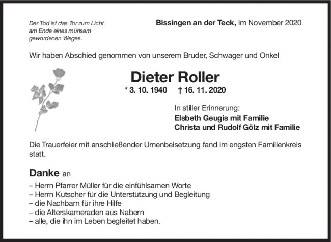 Trauer Dieter Roller