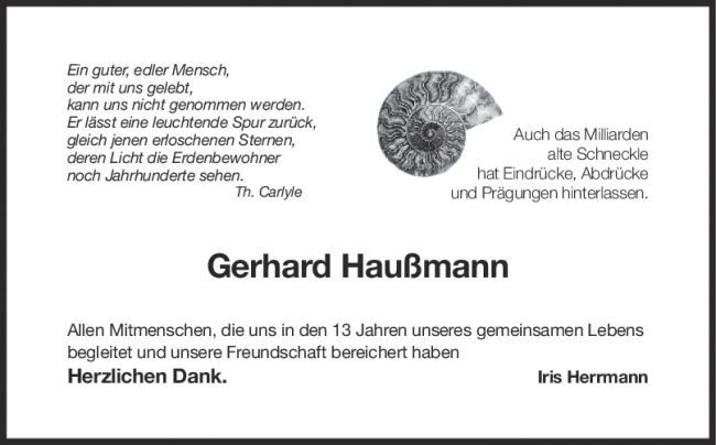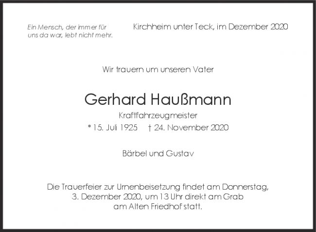 Trauer Gerhard Haußmann
