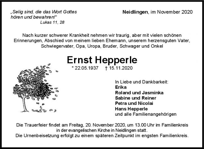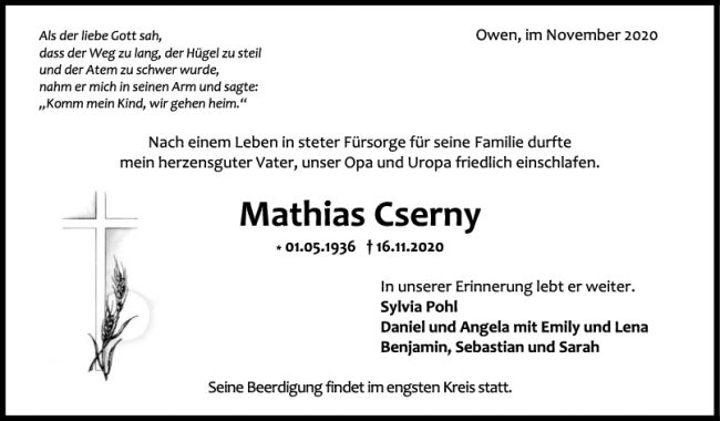 TodesanzeigeVon Benny Kuder16. November 202011 Kommentare