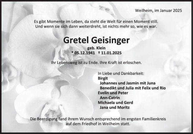 TodesanzeigeVon 25. Januar 2025Kommentar hinterlassen