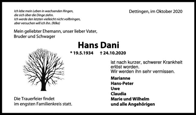 TodesanzeigeVon Benny Kuder27. Oktober 2020Kommentar hinterlassen