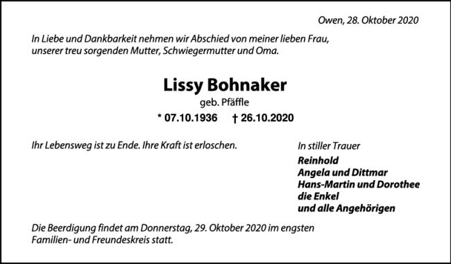 TodesanzeigeVon Benny Kuder28. Oktober 2020Kommentar hinterlassen