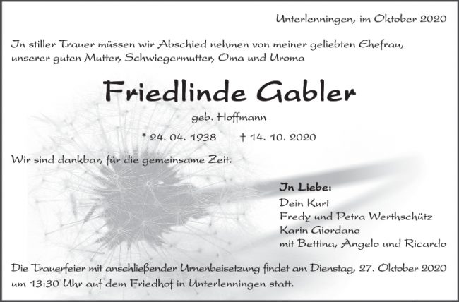 TodesanzeigeVon Benny Kuder24. Oktober 2020Kommentar hinterlassen