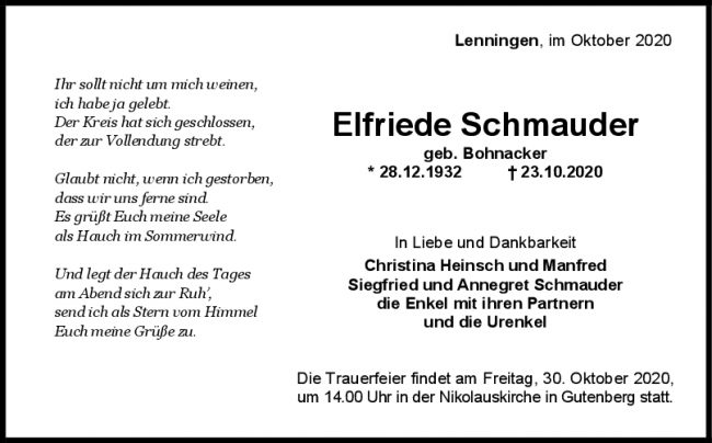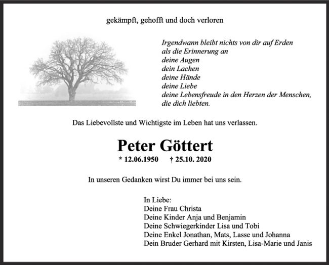 TodesanzeigeVon Benny Kuder27. Oktober 2020Kommentar hinterlassen