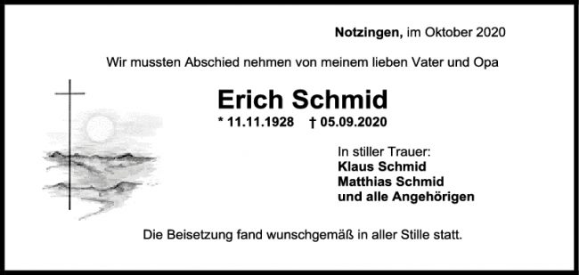Trauer Erich Schmid