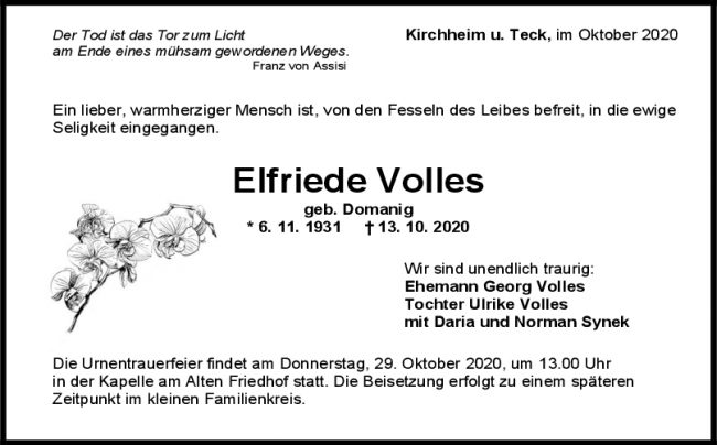 Trauer Elfriede Volles