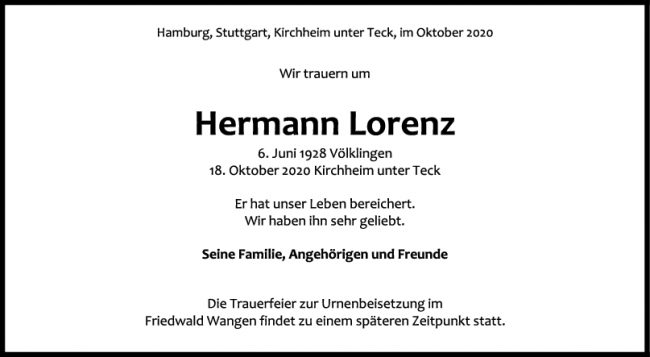 Trauer Hermann Lorenz