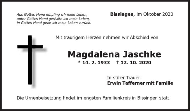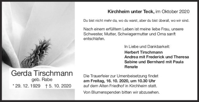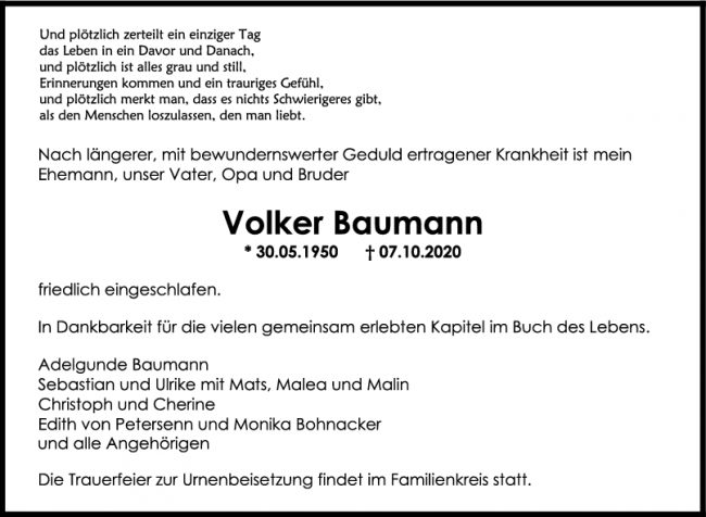 TodesanzeigeVon Benny Kuder12. Oktober 2020Kommentar hinterlassen