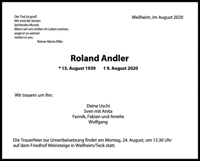 TodesanzeigeVon Benny Kuder19. August 2020Kommentar hinterlassen