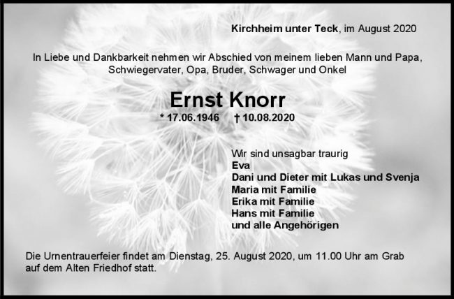 TodesanzeigeVon Benny Kuder24. August 20201 Kommentar