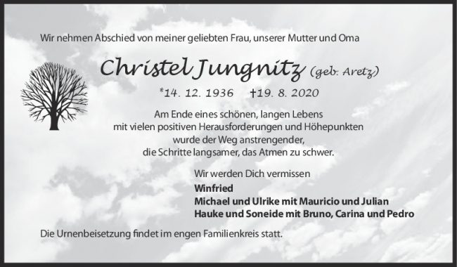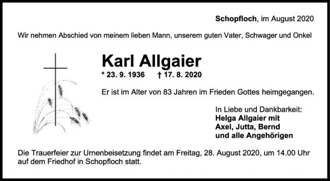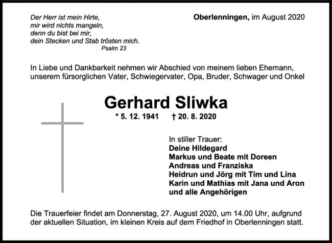 TodesanzeigeVon Benny Kuder24. August 2020Kommentar hinterlassen