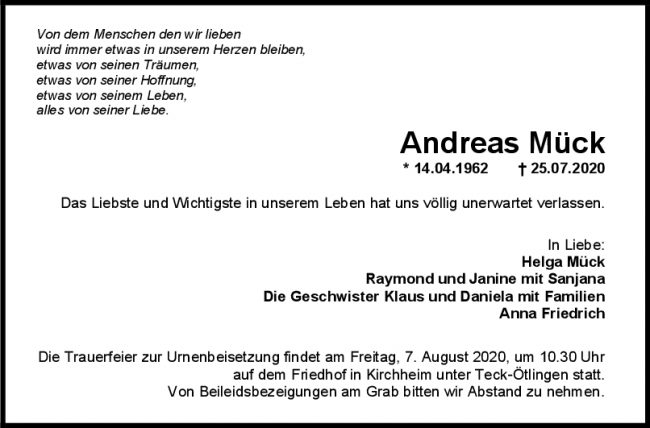 TodesanzeigeVon Benny Kuder5. August 2020Kommentar hinterlassen