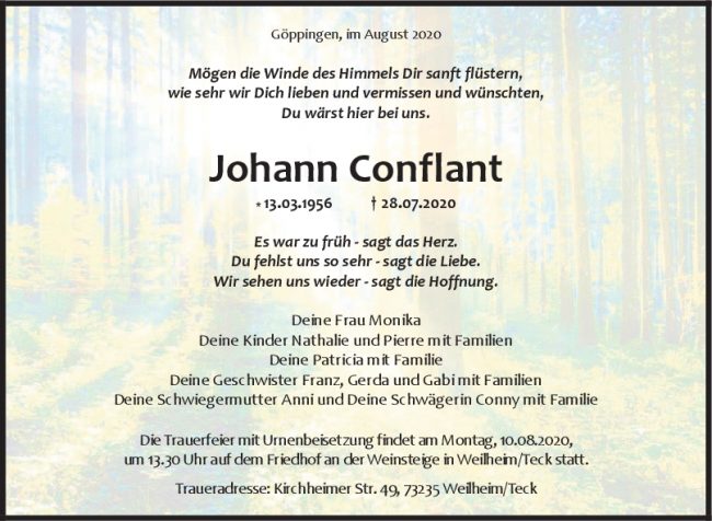 TodesanzeigeVon 1. August 2020Kommentar hinterlassen