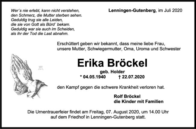 Trauer Erika Bröckel
