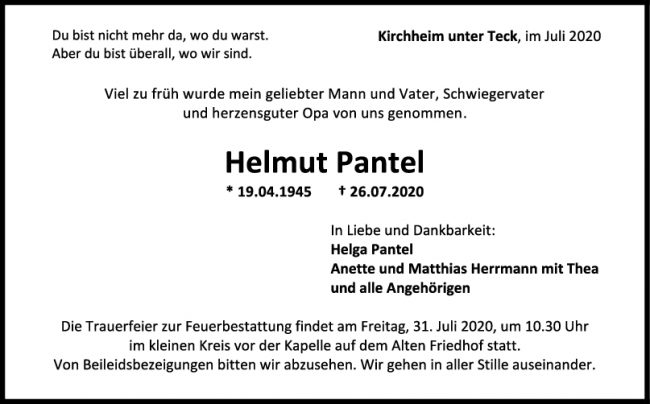 Trauer Helmut Pantel