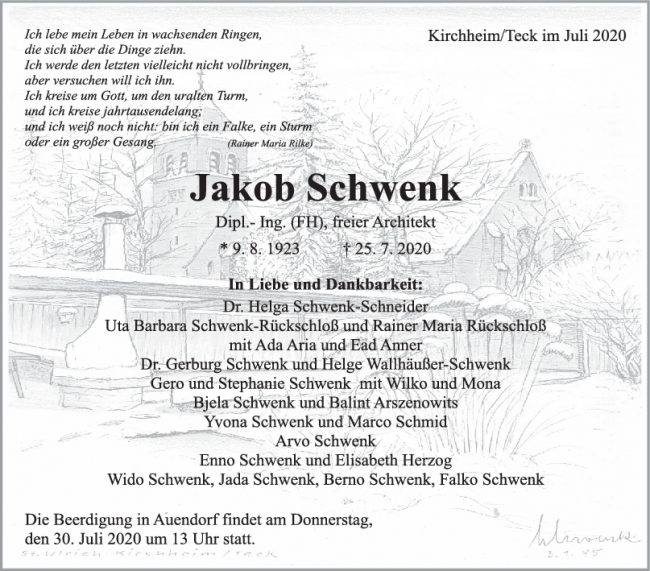 Trauer Jakob Schwenk