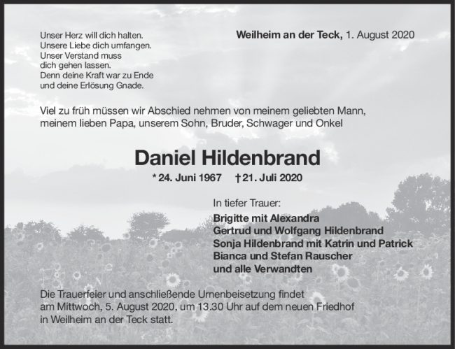 Trauer Daniel Hildenbrand