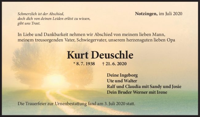 TodesanzeigeVon Benny Kuder8. Juli 2020Kommentar hinterlassen