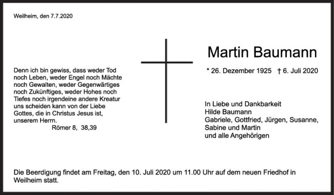 TodesanzeigeVon 8. Juli 2020Kommentar hinterlassen