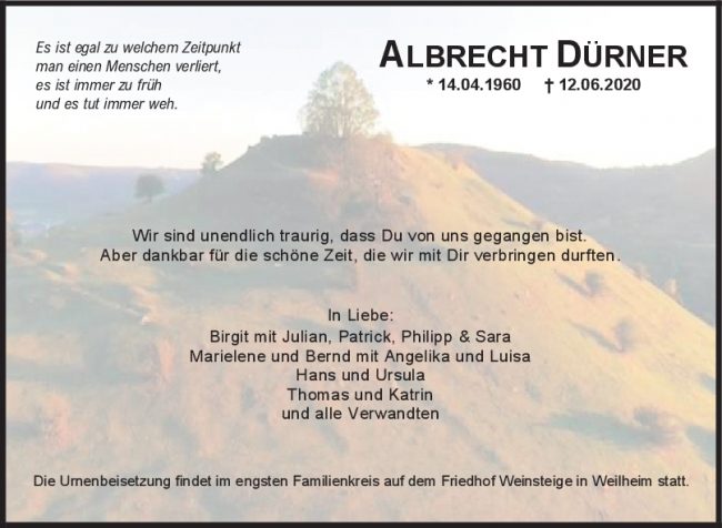 Trauer Albrecht Dürner