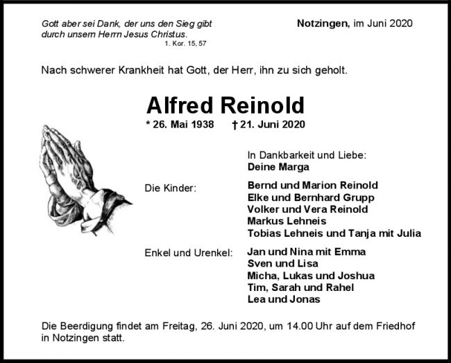 Trauer Reinold Alfred