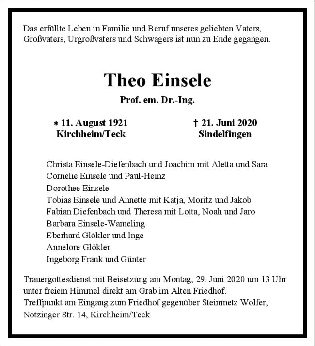 Trauer Theo Einsele