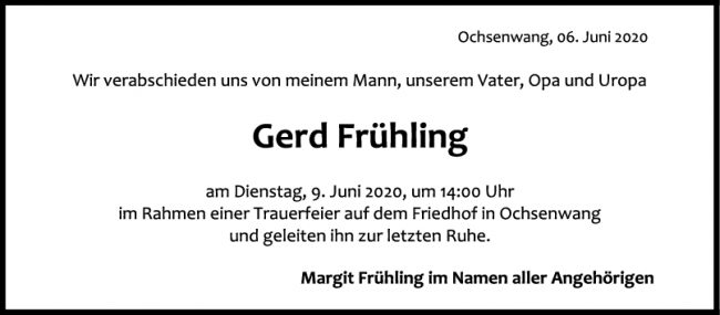 TodesanzeigeVon Benny Kuder6. Juni 2020Kommentar hinterlassen