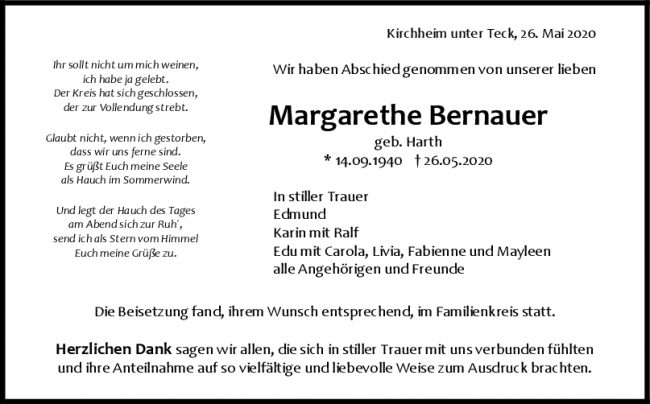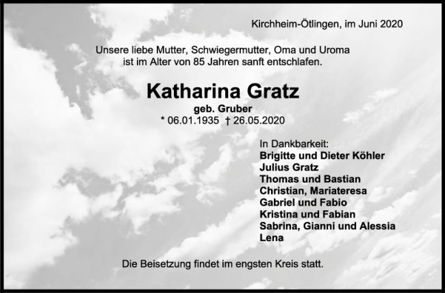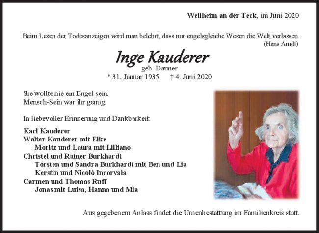 TodesanzeigeVon Benny Kuder7. Juni 2020Kommentar hinterlassen