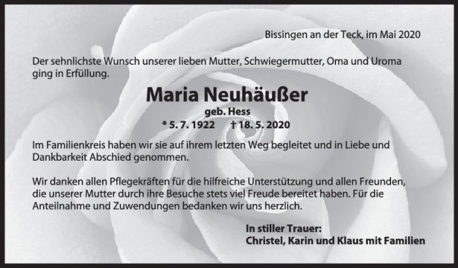 Trauer Maria Neuhäußer