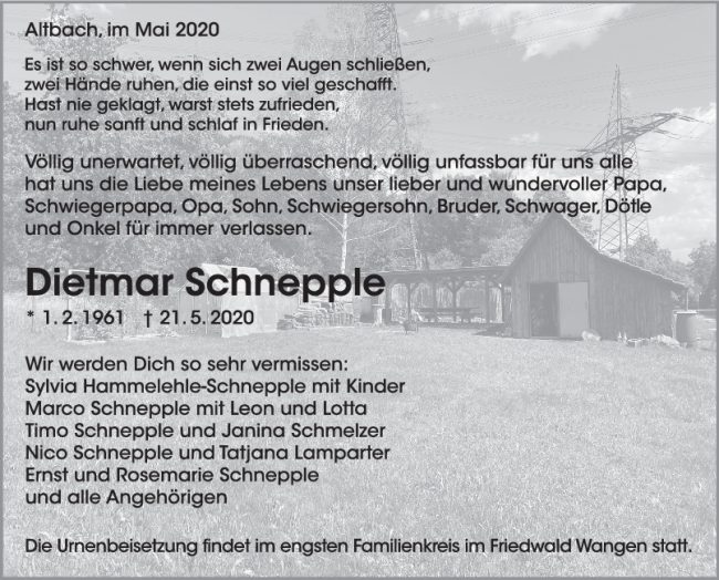 Trauer Dietmar Schnepple