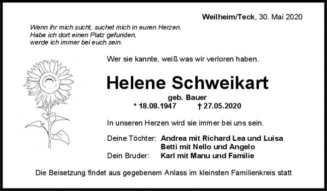 Trauer Helene Schweikart