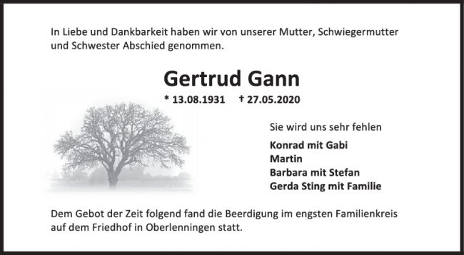 Trauer Gertrud Gann