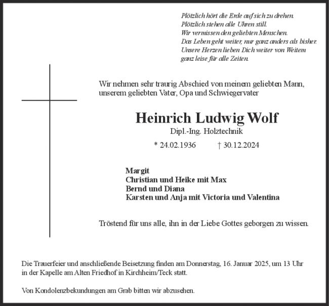 Trauer Heinrich Ludwig Wolf