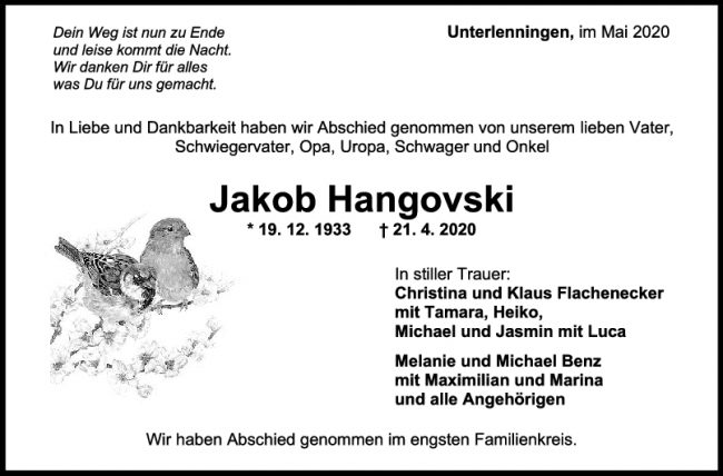 Trauer Jakob Hangovski