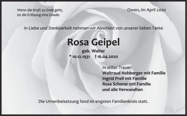Trauer Rosa Geipel