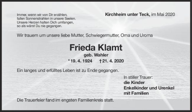 Trauer Frieda Klamt