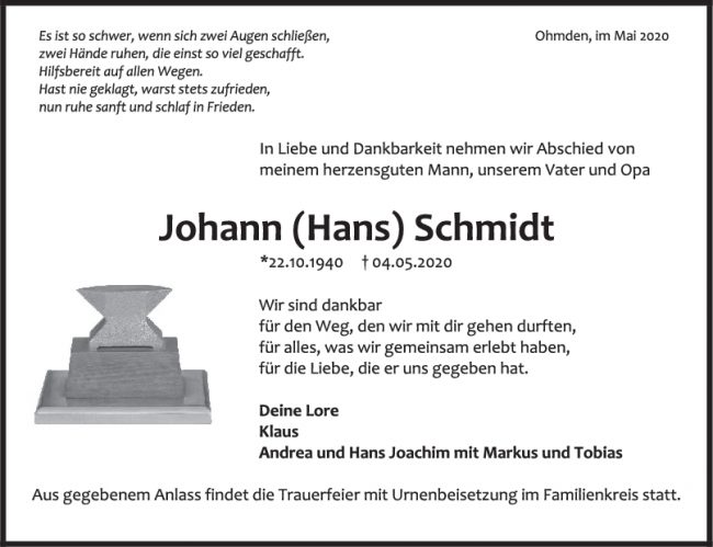 Trauer Johann Schmidt