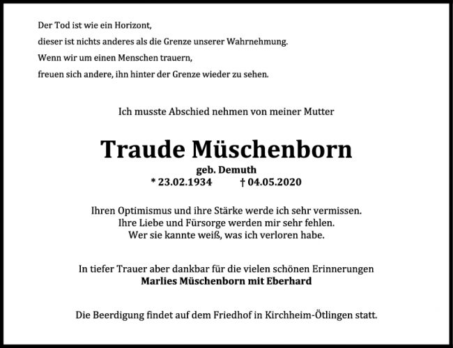 Trauer Traude Müschenborn