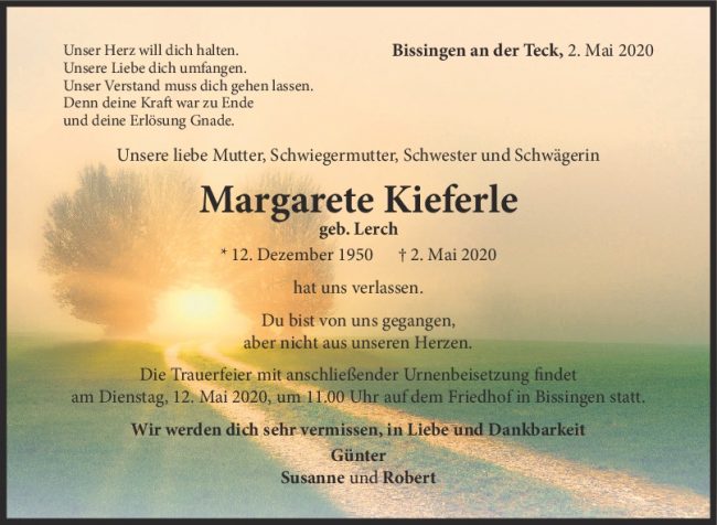 Trauer Margarete Kieferle